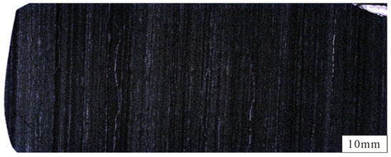 Argillaceous shale is developed in the Long114 sub-member of Well Y104 (Figure 9). The laminations are influenced by hydrodynamic controls, with wave-formed laminations being particularly evident. These laminations are a response to alternating coarse-grained (silt-sized-bright layers) and fine-grained (clay-sized-dark layers) sediment input.