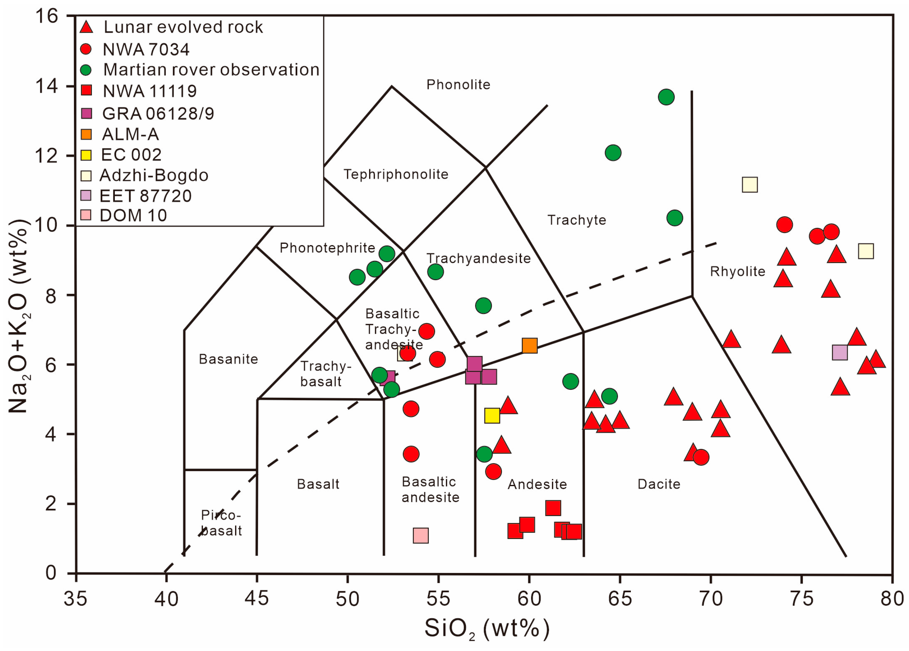 | Sample | Lunar Evolved Rock | NWA 11119 | ALM-A | EC002 | EET 87220 | Adzhi-bogdo | GRA 06128/9 | DOM 10 | NWA 7034 |
