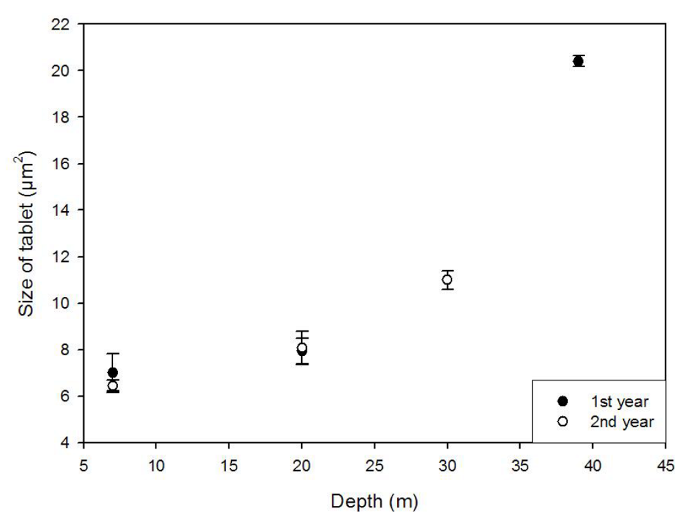 Influence of the Depth on the Shape and Thickness of Nacre Tablets of Pinctada margaritifera Pearl Oyster, and on Oxygen Isotopic Composition