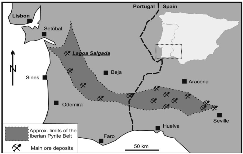 Location of the Lagoa Salgada orebody in the Iberian Pyrite Belt (IPB).