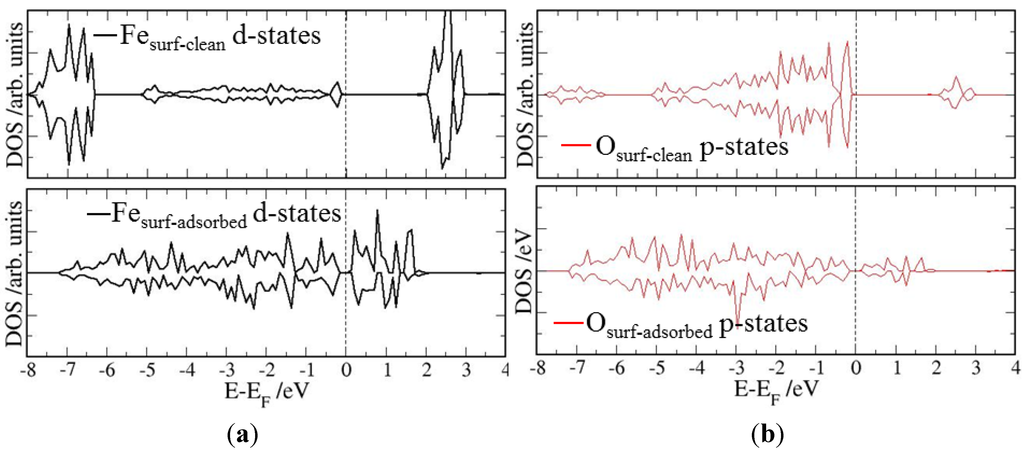 162. Błoński, P.; Kiejna, A.; Hafner, J. Theoretical study of oxygen adsorption at the Fe(110) and (100) surfaces. Surf. Sci. 2005, 590, 88–100. [Google Scholar] [CrossRef]