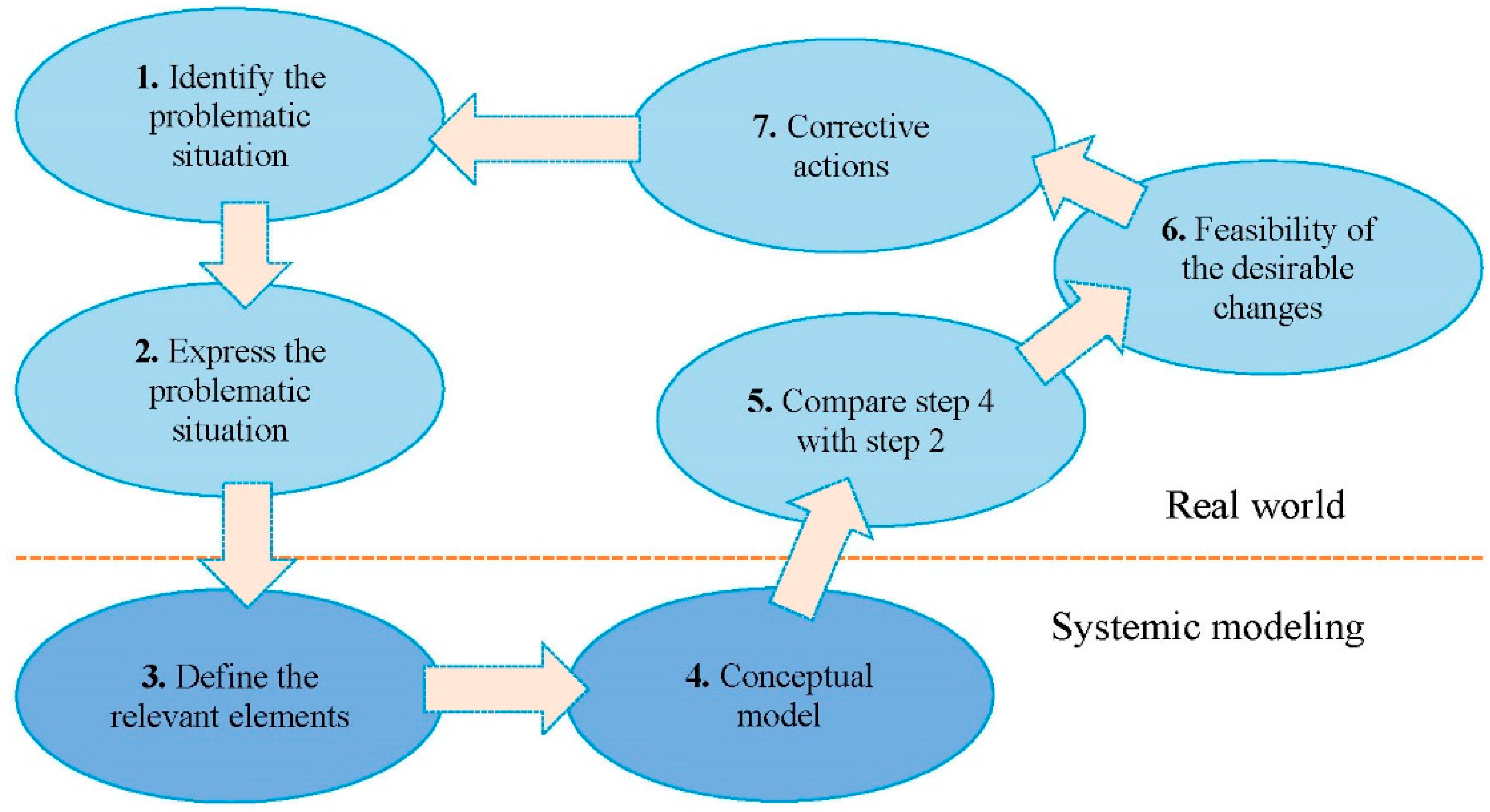 43]. These steps rely on the human activity systems concept in order to define the challenge and propose changes or transformations (