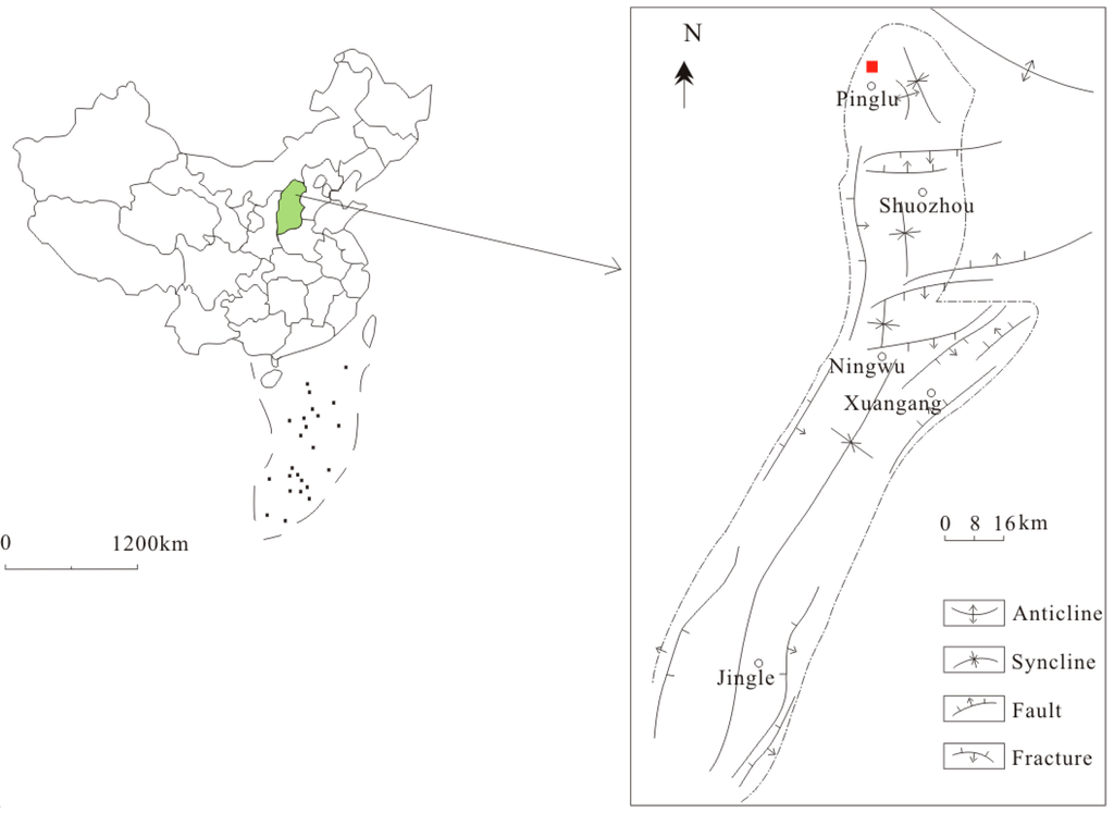 Figure 1. Location of the Pingshuo Mine in the Ningwu Coalfield, Shanxi Province, China.