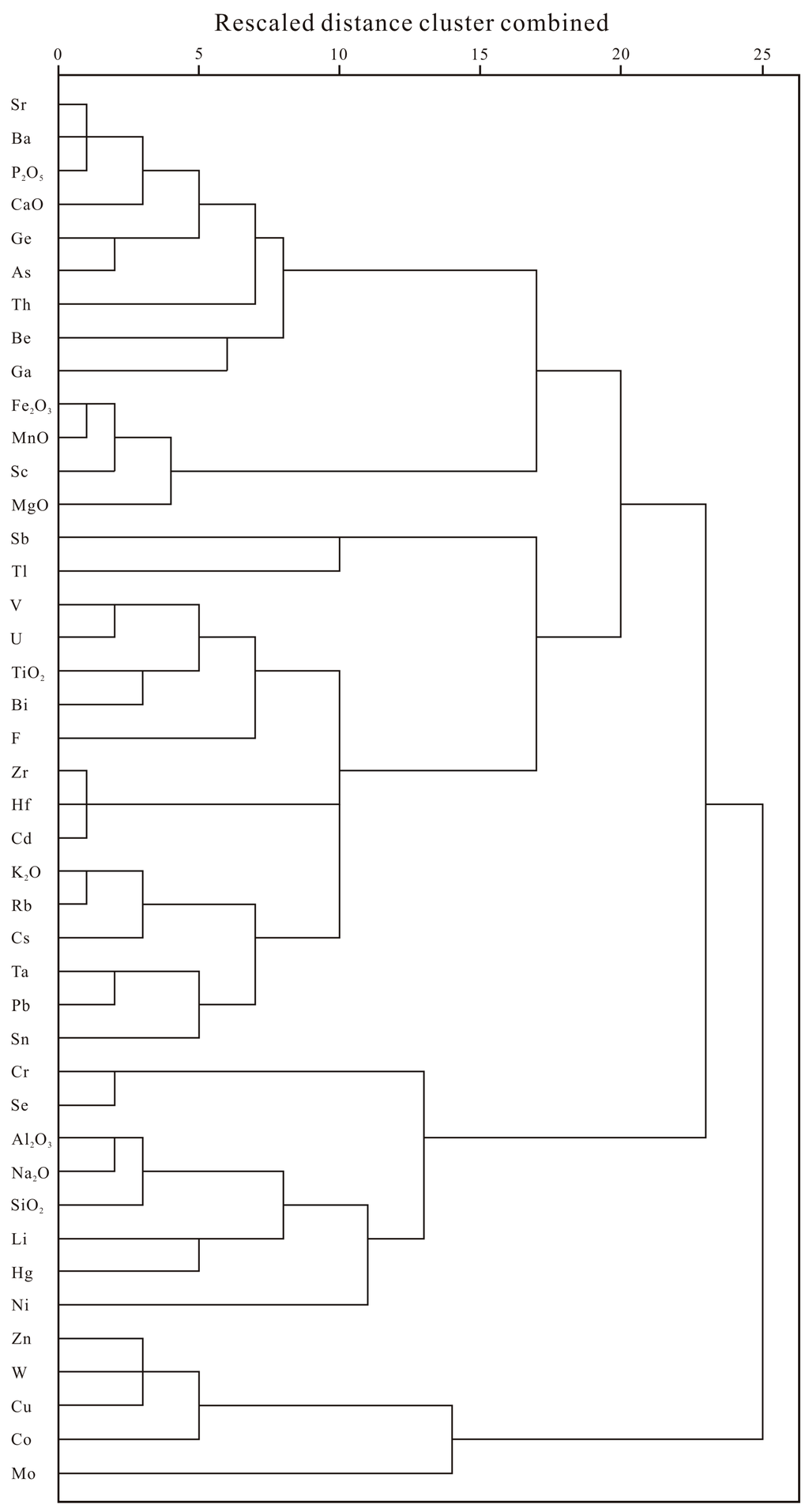 Figure 7. Cluster analysis of the geochemical data of the Pennsylvanian Pingshuo coal samples.