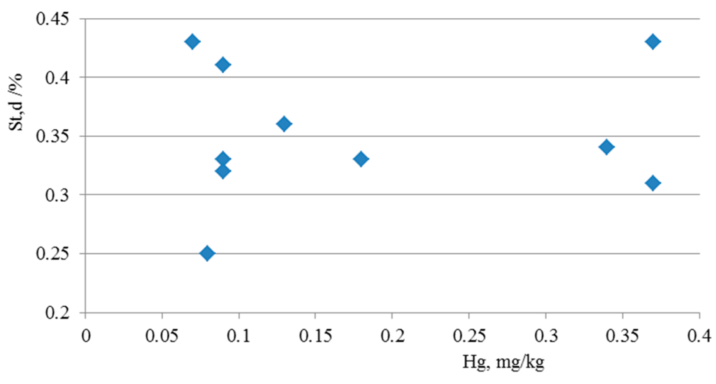 45. Kolker, A.; Senior, C.L.; Quick, J.C. Mercury in coal and the impact of coal quality on mercury emissions from combustion systems. Appl. Geochem. 2006, 21, 1821–1836. [Google Scholar] [CrossRef]