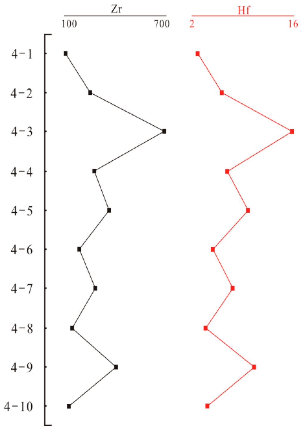 Figure 12. Vertical variation of Zr and Hf in the profile of the Pingshuo coals.