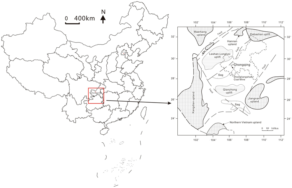 Location of the Zhongliangshan Mine, Chongqing, southwestern China.