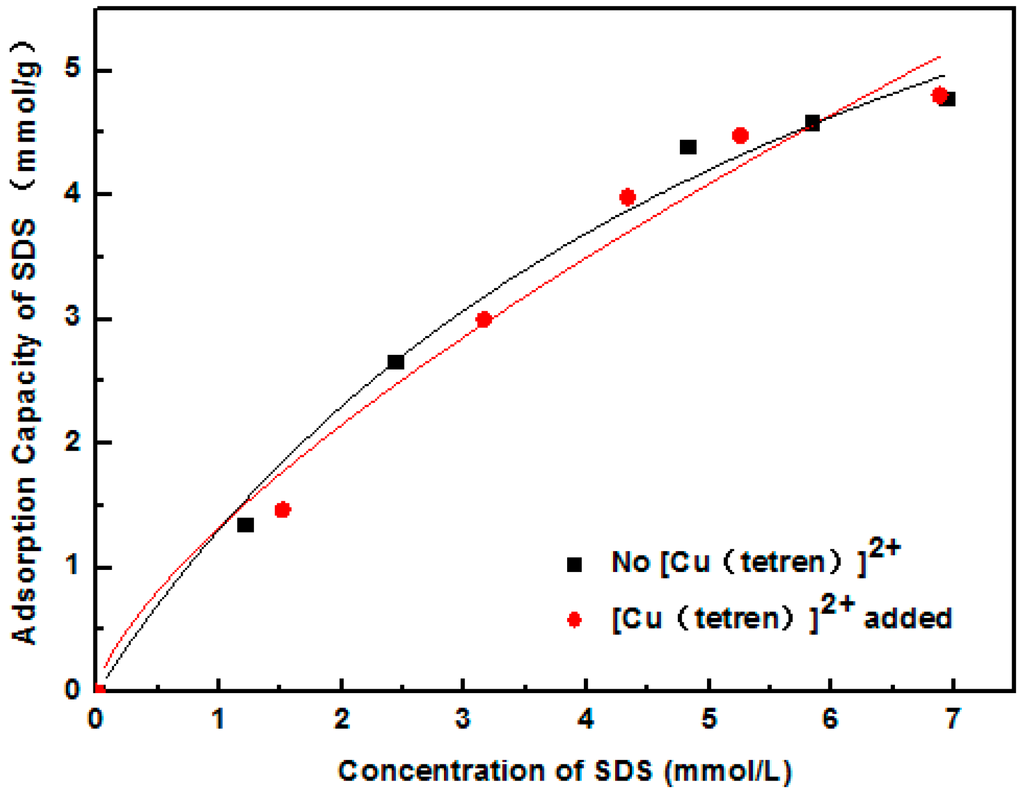 Adsorption capacity of SDS on the surface of original MMT sample and the MMT sample adsorbed with [Cu(tetren)]2+.