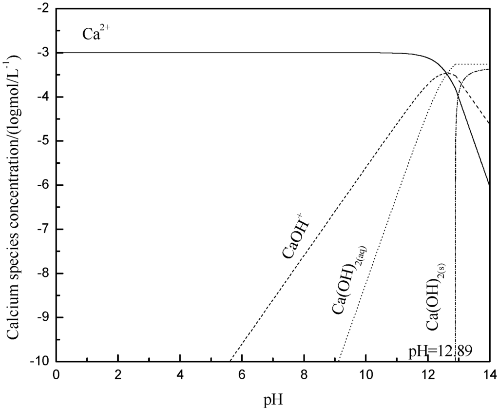 Calculated concentration of calcium species in solution with 1 × 10−3 mol/L Ca2+.