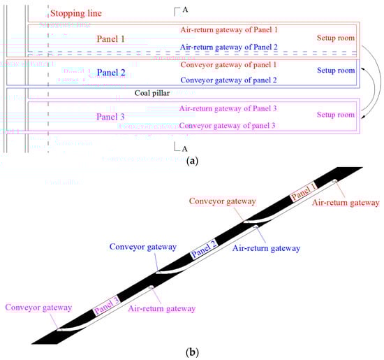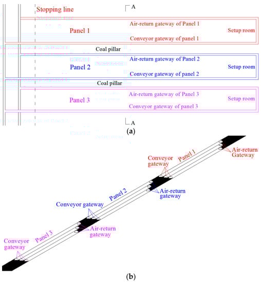 - Zhao, J.L. Development and outlook of 3-D stagger arrangement roadway layout technology. Coal Eng. 2014, 46, 1–3. (In Chinese) [Google Scholar]