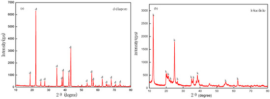 - Bish, D.L. Rietveld refinement of the kaolinite structure at 1.5 K. Clays Clay Miner. 1993, 41, 738–744. [Google Scholar] [CrossRef]