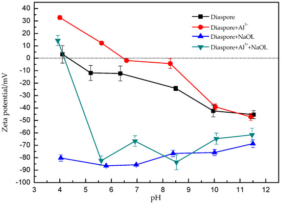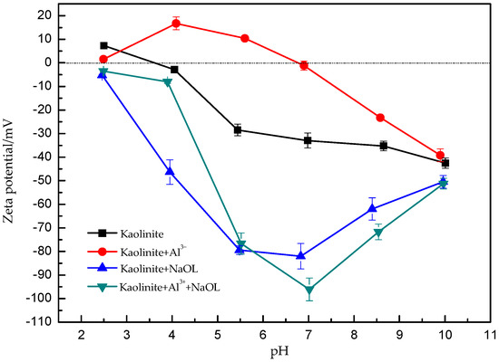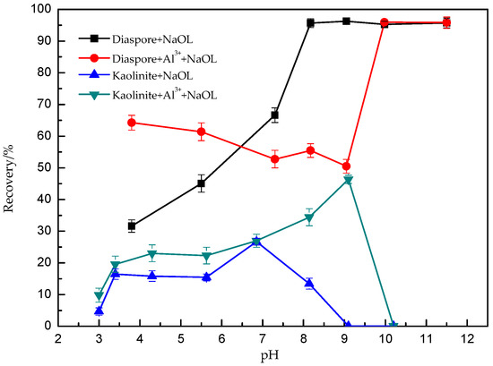 3.1. The Effects of Backwater Al3+ on Diaspore and Kaolinite Flotation Recoveries