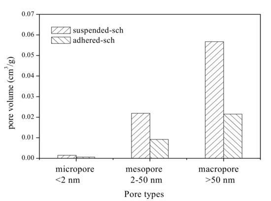 3.4. The Pore Volume and Pore Size Distribution of Adhered-Sch and Suspended-Sch