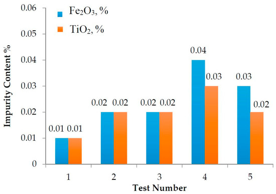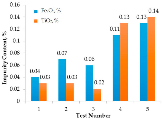 Impurity content of quartz concentrates for each test.