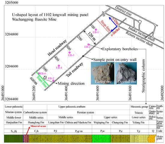 Layout of the 1102 longwall mining panel in the Wachangping bauxite mine.