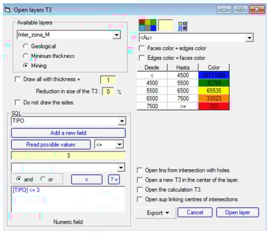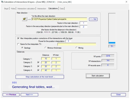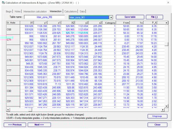 - Castañón, C. Nuevo Método de Cálculo de Recursos Geológicos y Reservas Mineras para Yacimientos Tabulares y Aplicación Informática para la Gestión Integral de un Proyecto Minero. Ph.D. Thesis, Universidad de Oviedo, Asturias, Spain, 2006; 200p. [Google Scholar]