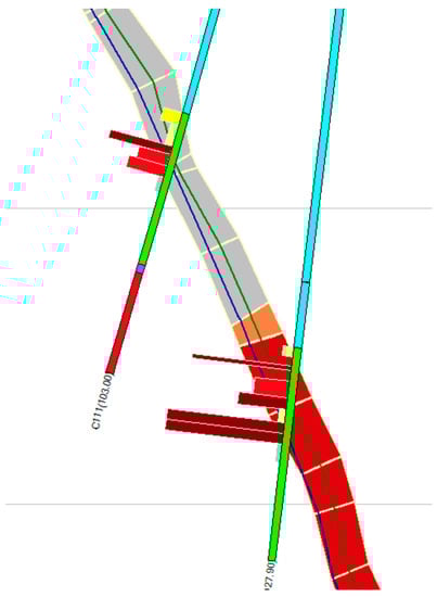 4.4. Calculation of the Intercept Values of the Surveys Crossing the Seam