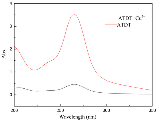 UV spectra of ATDT in the presence and absence of Cu2+ ions.