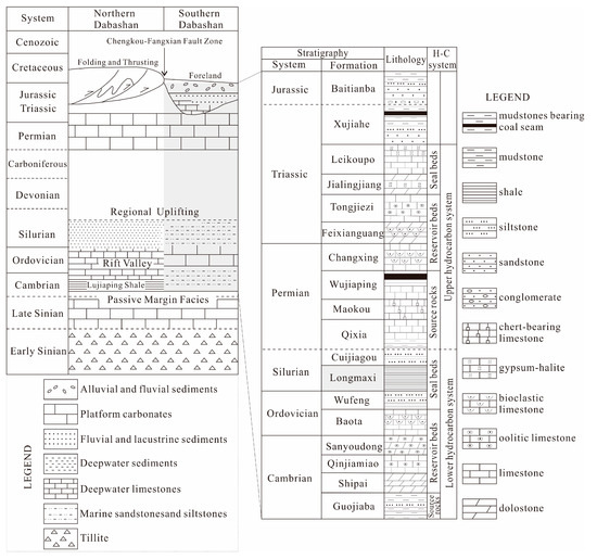 Integrated stratigraphic column of the northeastern Sichuan Basin. H-C is the abbreviation for hydrocarbon.