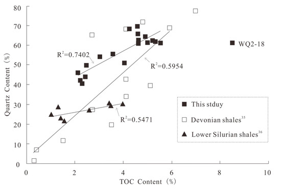 Relationship between the TOC content and quartz content.