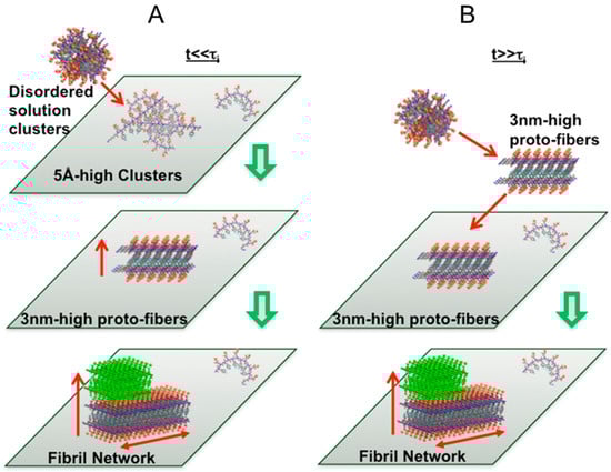Nature has always been a fascinating source of inspiration for scientists and engineers. During billions of years of evolution, highly sophisticated and ordered structures in living systems with remarkable properties have been created [1,2]. These properties, such as physical mechanics, are often far better than those of the equivalent synthetic materials with similar chemical compositions. For example, spider silk [3] has a tensile strength comparable to steel, but with a higher flexibility and much less density [4,5,6,7], which makes it an ideal material for a wide variety of military, industrial, and consumer applications [8,9,10,11]. Moreover, biological systems are made with significantly weak components, such as soft proteins, brittle minerals and water. Finally, these highly ordered structures can form at mild temperature and pressure conditions spontaneously or with relatively low energy consumption, mainly through self-assembly [12,13]. Incorrect or undesired self-assembly processes can lead to malfunction or even diseases, such as Alzheimer’s and Parkinson’s [14]. Therefore, it is fundamentally important and interesting to determine nucleation and self-assembly pathways of biogenic materials in order to understand the mechanisms of living systems and provide a rationale for the design and production of new classes of materials, such as biochips, biosensors, and novel drugs [15].
