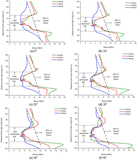 - The MEZ around mined coalbeds with incidence angles ranging from 0° to 50° consistently exhibit a “hexagon” shape, and rotate in a clockwise direction as the coalbed angle increases. Three-dimensional stresses in the MEZ are low enough to make good flow channels for methane to flow freely.