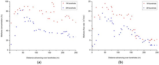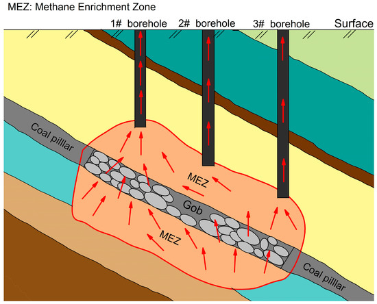 - The coalbed angle has a significant impact on the MEZ height. The MEZ height increases as the coal seam angle increases. As the MEZ height increases, the methane concentration of the corresponding height increases exponentially. A field test conducted in the Pansan mine in China confirms this. The results indicate that a higher methane concentration and flow rate can be achieved by arranging a surface vertical borehole at a relatively higher position in the MEZ.