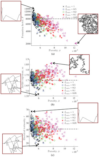 - Ghanbarian, B.; Hunt, A.G.; Ewing, R.P.; Skinner, T.E. Universal scaling of the formation factor in porous media derived by combining percolation and effective medium theories. Geophys. Res. Lett. 2014, 41, 3884–3890. [Google Scholar] [CrossRef]