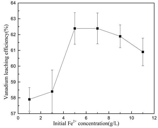 The highest vanadium leaching efficiency over time at different initial Fe2+ concentrations.