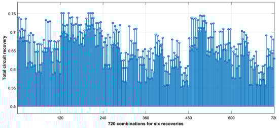 Overall circuit recovery for 720 possible combinations of stage recoveries.