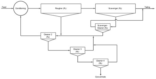- Cisternas, L.A.; Jamett, N.; Gálvez, E.D. Approximate recovery values for each stage are sufficient to select the concentration circuit structures. Miner. Eng. 2015, 83, 175–184. [Google Scholar] [CrossRef]