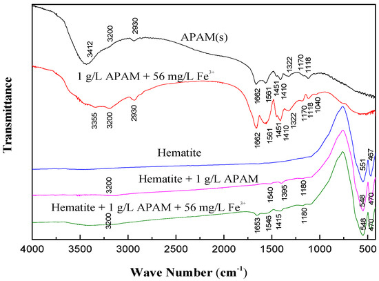3.4. FTIR Spectra of Hematite-APAM Treated with Fe3+