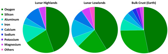 Figure 8. Summary of major element relative abundances in the lunar highlands and lowlands compared to the Earth’s crust [65].