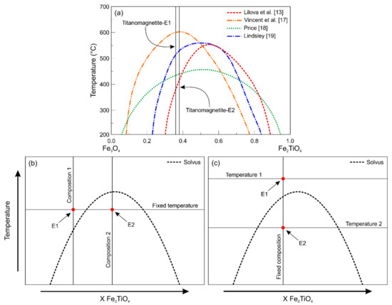 - Buddington, A.F.; Lindsley, D.H. Iron-titanium oxide minerals and synthetic equivalents. J. Petrol. 1964, 5, 310–357. [Google Scholar] [CrossRef]