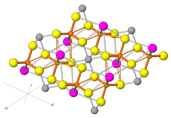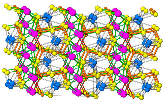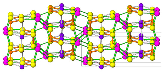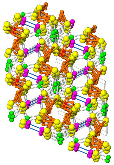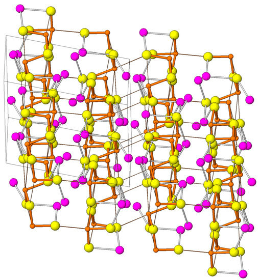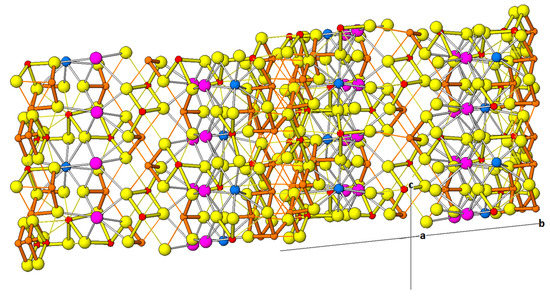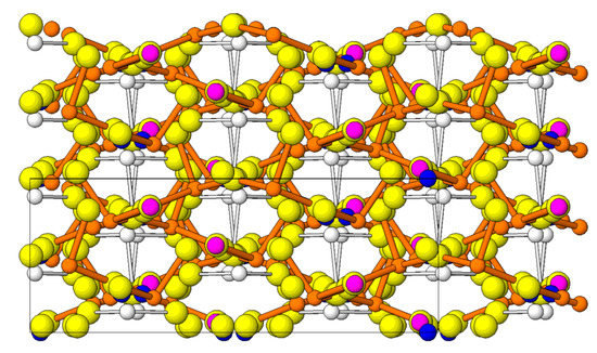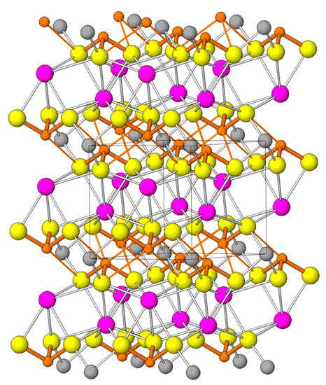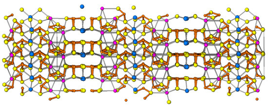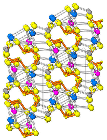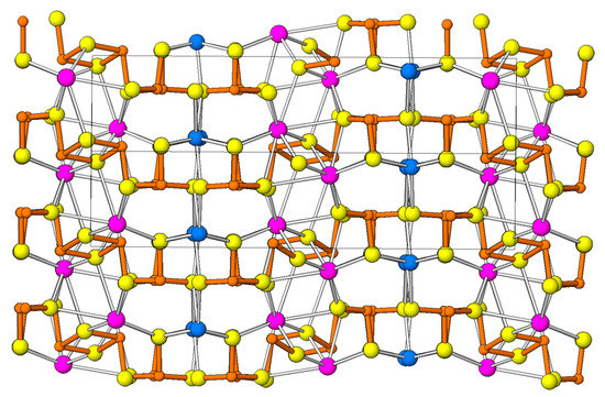 - Makovicky, E. Cyclically twinned sulphosalt structures and their approximate analogues. Z. Kristallogr. 1985, 173, 1–23. [Google Scholar] [CrossRef]