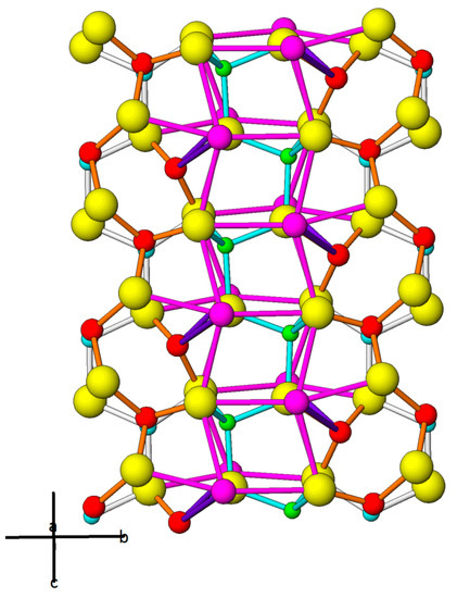 - Liebau, F. Structural Chemistry of Silicates; Springer-Verlag: Berlin, Germany, 1985; Figure 10.4. [Google Scholar]