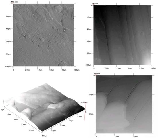 Figure 8. AFM Images of faces of molybdenite particles used for contact angle measurements [31,32].