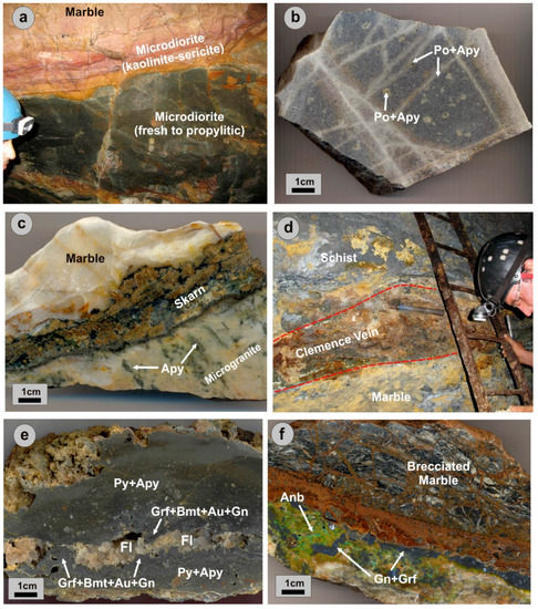 - Sharp, Z.D.; Essene, E.J.; Kelly, W.C. A re-examination of the arsenopyrite geothermometer: Pressure considerations and applications to natural assemblages. Can. Mineral. 1985, 23, 517–534. [Google Scholar]