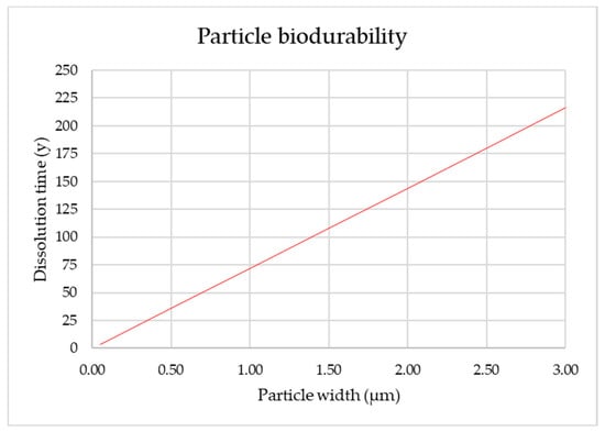 We thus calculated the particle biodurability starting from the smallest measured diameter (0.05 µm) to a maximum diameter of 3 µm (Figure 10).