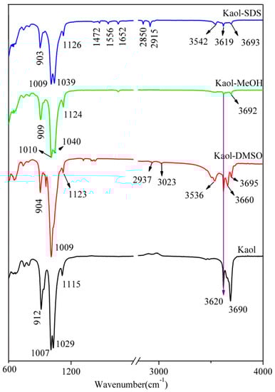 - Zhang, S.; Liu, Q.F.; Cheng, H.F.; Zeng, F.G. Combined experimental and theoretical investigation of interactions between kaolinite inner surface and intercalated dimethyl sulfoxide. Appl. Surf. Sci. 2015, 331, 234–240. [Google Scholar] [CrossRef]