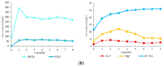 All ion content measurements were conducted, the preliminary results obtained for the water sample are listed in Table 3. The concentrations of positive ions in the reaction solution were determined via inductively coupled plasma atomic emission spectroscopy (ICP-OES) (Varian, Palo Alto, CA, USA). The concentrations of negative ions were tested by ion chromatography (IC).