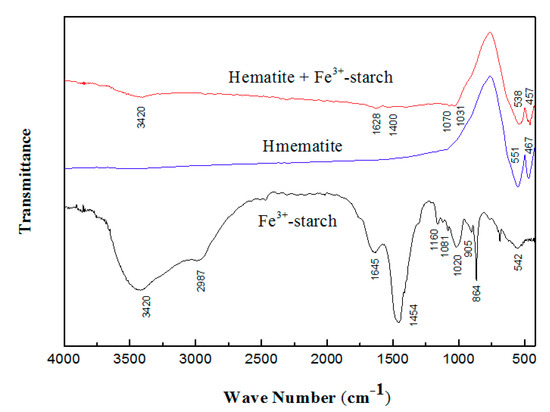 Figure 9. FTIR spectra of hematite conditioned with the Fe3+-starch (MSC).