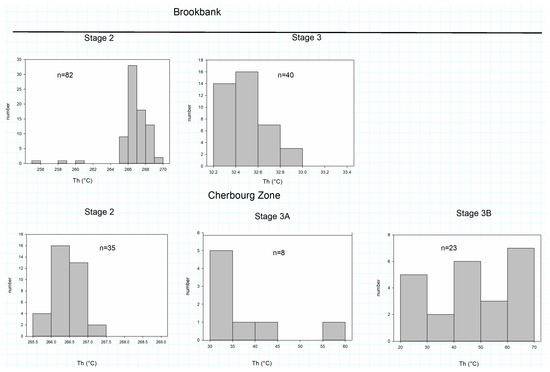 Comparative homogenization temperatures of the stages at Brookbank and the Cherbourg Zone.