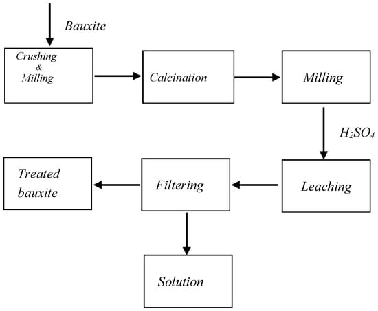The bauxite mineral sample used in this work was sourced from Dengfeng, Henan Province, China. Sulfuric acid (H2SO4) used as leaching agent is of analytical grade (provided by Aladdin Biotech Shares in Shanghai, China), and all the solutions with specified concentrations were prepared with deionized water.