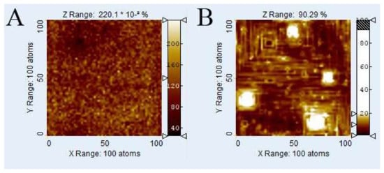 The roughness depth Rt data (Equation (2), Methods chapter) show a clear tendency towards lower values in the Voronoi simulation. This is because the Rt value, the difference between the highest and the lowest points on a surface, is very sensitive to minima and maxima. Voronoi simulations can reconstruct the general topography of a surface. However, misfit of the lowest valleys inside the pits, which affected very few atomic positions, was found. Single (x, y) point surface peaks are difficult to reconstruct by the current Voronoi simulations, as shown by the Rt deviations. An improvement of the fitting function, maybe also using more parameters, might be able to correct such deviations, although the algorithm will never be able to calculate the lowest values inside the critical radius of etch pits.