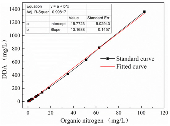 Figure 1. Standard curve of dodecyl amine (DDA)-N content obtained through total organic nitrogen (TON) analysis.
