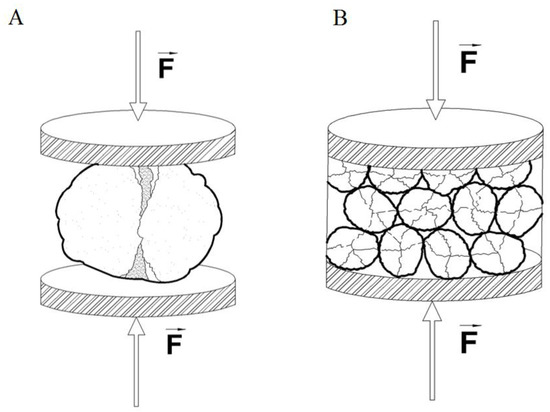 - Sohn, C.; Zhang, Y.D.; Cil, M.; Buscarnera, G. Experimental assessment of continuum breakage models accounting for mechanical interactions at particle contacts. Granul. Matter 2017, 19, 67. [Google Scholar] [CrossRef]