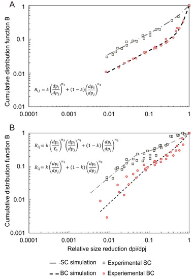 - Austin, L.G.; Luckie, P.T. Methods for determination of breakage distribution parameters. Powder Technol. 1972, 5, 215–222. [Google Scholar] [CrossRef]