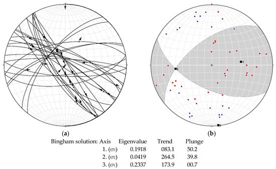 Although stress analysis from fault slip data is widely applied, debate continues whether the obtained solutions represent a stress field or provide a measure of strain and strain rate [82,83]. Marrett [49], along with Allmendinger and Faultkinwin [80], using FaultKinWin, prefer to interpret the fault plane solutions as an indicator of strain rather than stress.