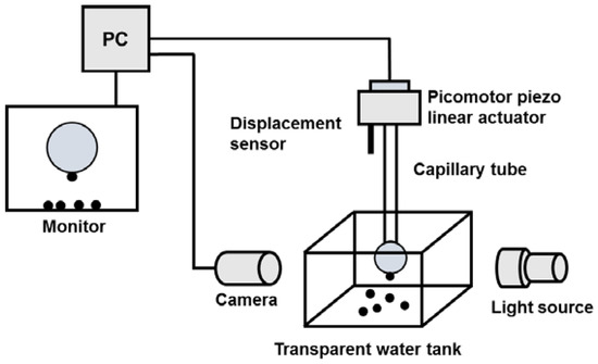 A home-made system composed of a high speed camera, a light source, a displacement stage, a micro-syringe, a capillary tube and a picomotor piezo linear actuator was used to measure the induction time (Figure 2). An air bubble was generated by the micro-syringe at the tip of the capillary tube, which submerged in water, the air bubble was then moved down till the bubble is retracted and remained in contact with sample for a given time, then the air bubble moved up. The camera was used to record whether successful attachment between sample and air bubble can occur, and the minimum time for successful attachment is defined as the induction time. It should be noted that, due to the limitation of time control accuracy of our system, the actual induction time obtained is not the same as the induction time in real flotation; however, the variation trend of induction time under different flotation condition is identical.